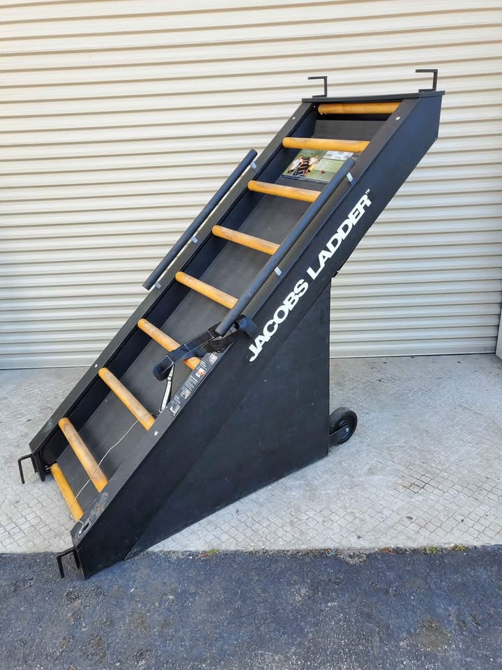 Jacobs Ladder is an innovative cardio machine with ladder-type rungs on a non-motorized continuous treadmill. It’s self-paced, so the faster you go, the faster it goes. Jacobs Ladder is preferred by pro football teams, the FBI, the Army, the Navy, West Point and numerous Division I universities to improve their strength and conditioning programs.